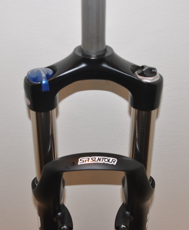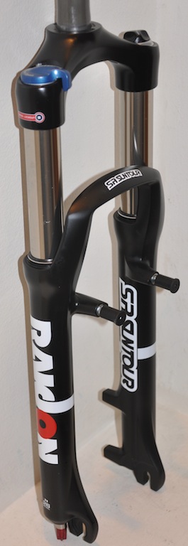 Велосипедная вилка Suntour RAIDON LO R, ход 120 мм, для велосипедов с колесами 26 дюймов, стальной шток 1-1/8, штаны магниевые, ноги сталь, правая нога: блокировка хода (Lockout), регулировка отскока (Rebound), левая нога: жёсткость воздушной пружины. Крепление под тормоз V-Brake или дисковый Post Mount, вес 1900 грамм.Характеристики