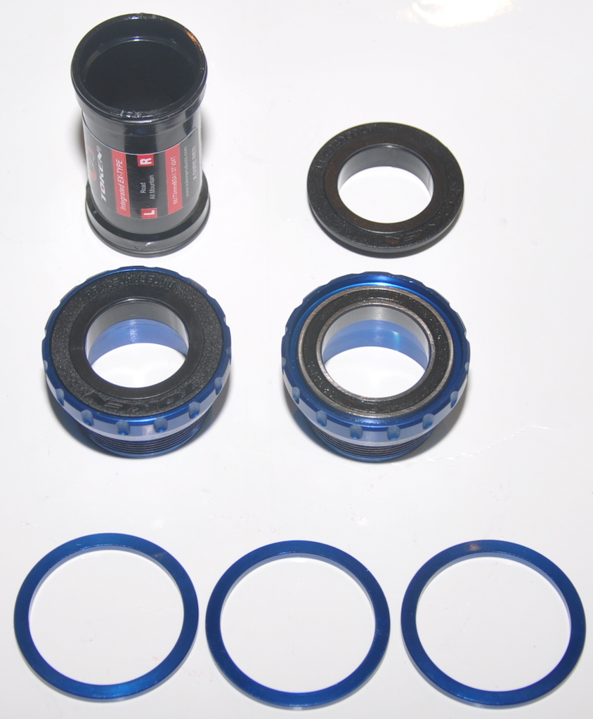 Каретка Token TK877EX, с внешними подшипниками, назначение МТБ и Шоссе (универсальный пыльник), ось 24 мм, стандарт 68/73мм BSA 1.37x24T, вес 96 грамм, цвет синий.