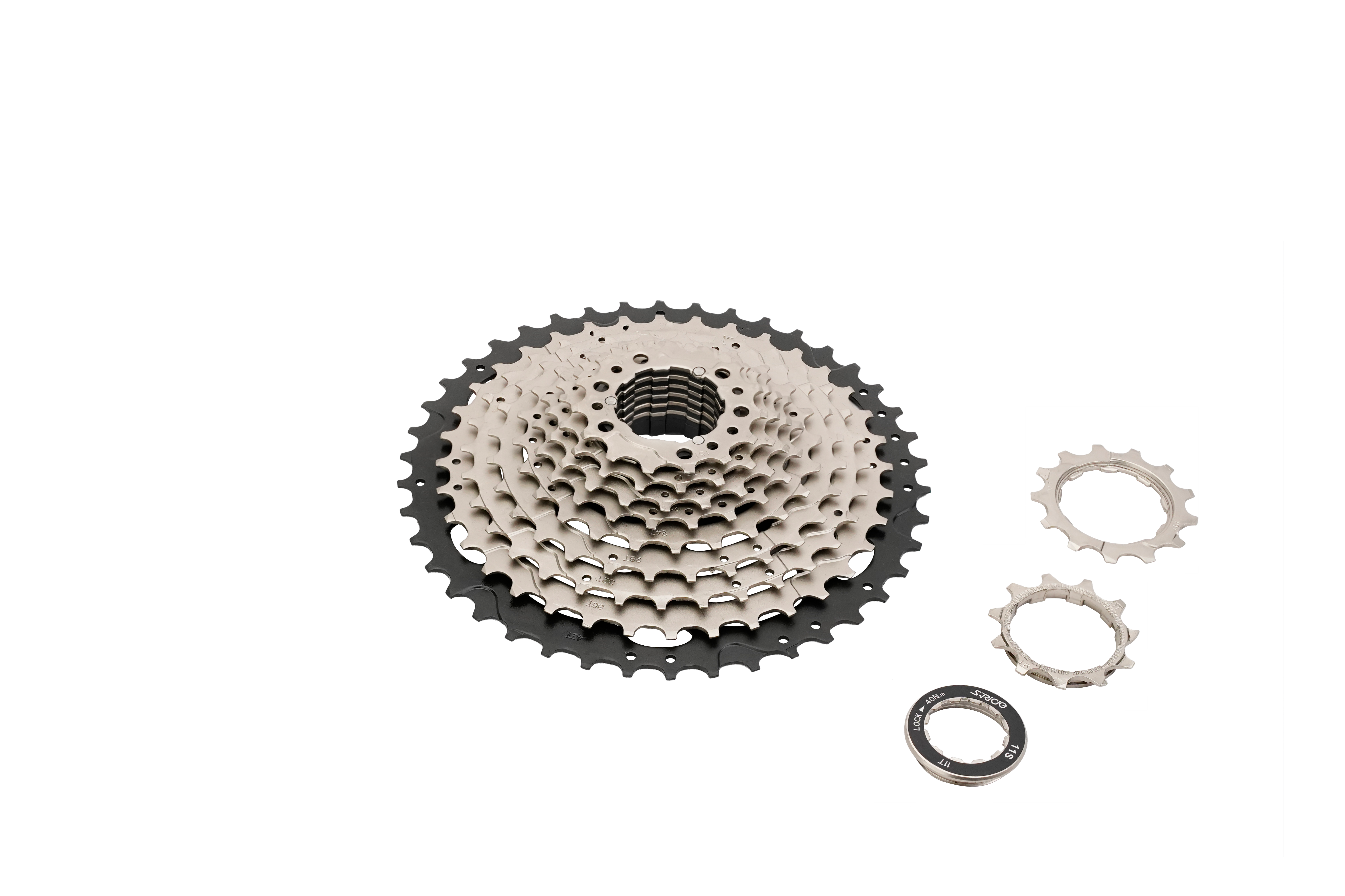 Кассета S-Ride CS-M400, 11-46T, на 10 скоростей, цвет Silver/Ph Black, на алюминиевом пауке (anod. black), набор звезд 11-13-15-18-21-24-28-34-40-46T.