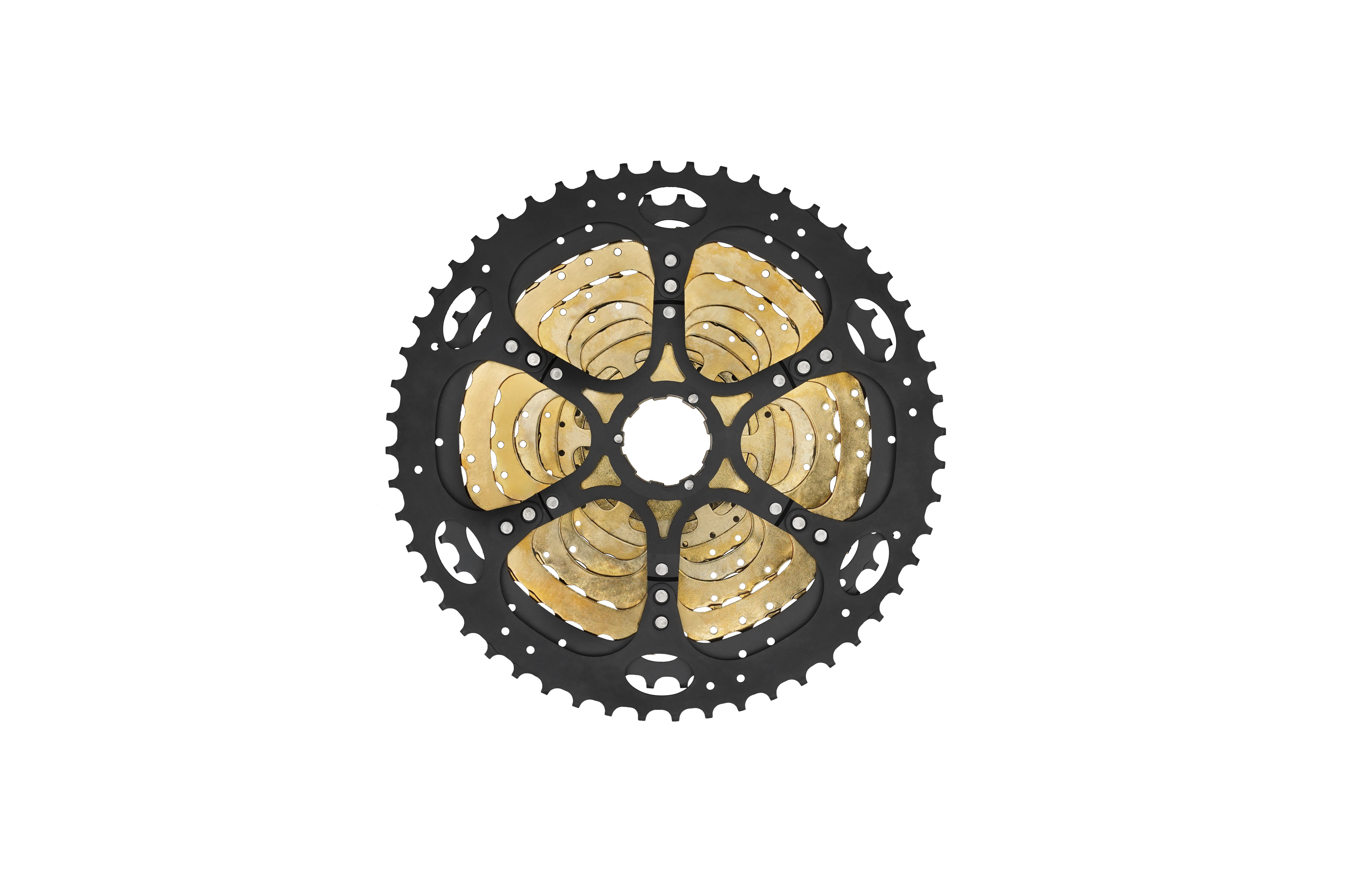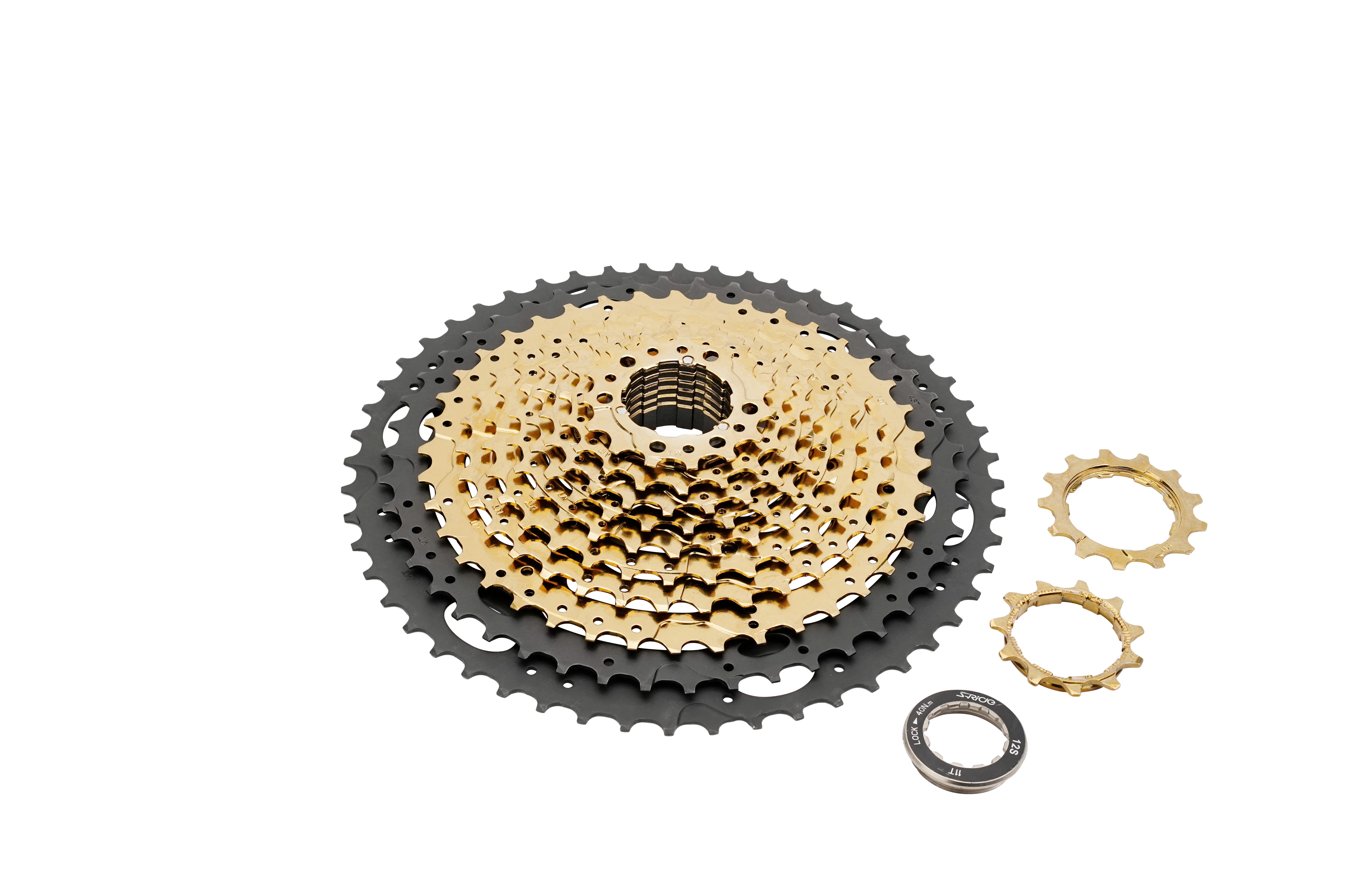 Кассета S-Ride CS-M600, звезды 11-50T, на 12 скоростей, цвет Gold+ED Black, на алюминиевом пауке (anod. black), набор звезд 11-13-15-17-19--21-24-28-32-36-42-50.