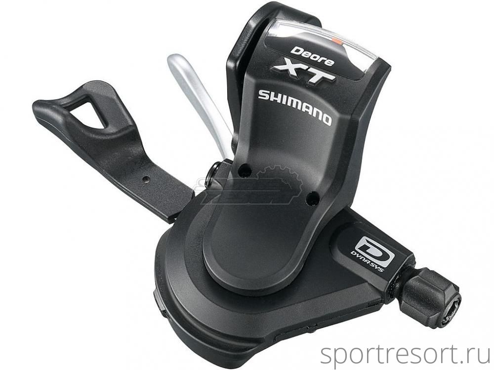 Шифтер Shimano Deore XT SL-M770, левая сторона, на 3 скорости, для привода 3х9, технологии Rapidfire Plus и Dyna-Sys, трос и оплетка в комплекте.Технологии: