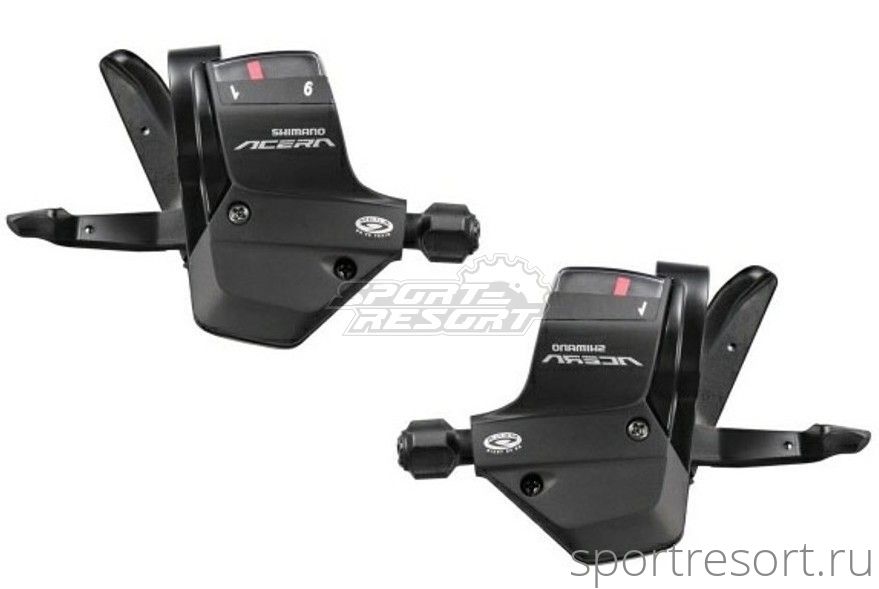 Комплект велосипедных переключателей Shimano Acera SL-M390, правая и левая сторона, для привода 3х9 скоростей, с индикатором скоростей, технология Rapidfire Plus, трос в комплекте.Технологии: