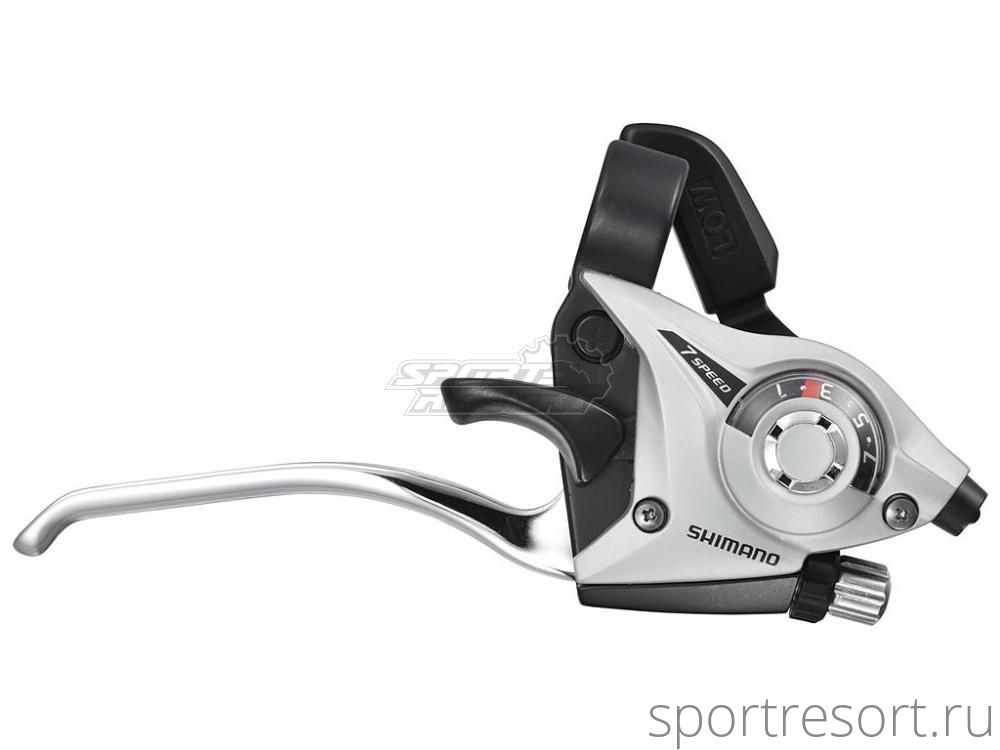 Шифтер с тормозной ручкой Shimano Tourney ST-EF51, правая сторона, на 9 скоростей, цвет серебро, трос 2050 мм в комплекте.