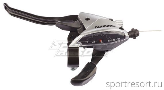 Шифтер с тормозной ручкой Shimano Tourney ST-EF510, левая сторона, 3 скорости, цвет серебро, трос 1800 мм в комплекте.
