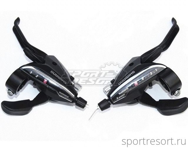 Переключатель скоростей совмещенный с тормозной ручкой (моноблок) Shimano ST-EF65, левая и правая сторона, для привода 3x7 скоростей, тормозная ручка под 3 пальца, цвет черный, тросы и оплетка в комплекте.