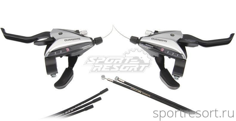Шифтер/Тормозные ручки (моноблок) Shimano ST-EF65, левая и правая, 3x8 скоростей, цвет серебристый, трос и оплетка в комплекте.