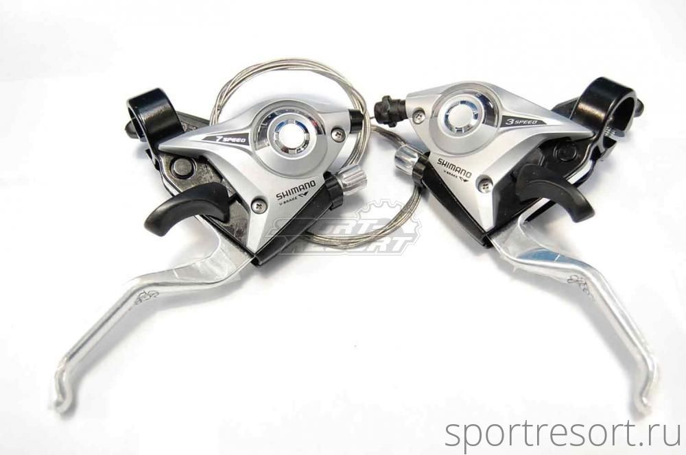 Шифтер /Тормозная ручка (моноблок, комбиманетки) Shimano Tourney ST-EF51, цвет серебристый, левая и правая, 3x7 скоростей, трос и оплетка в комплекте.