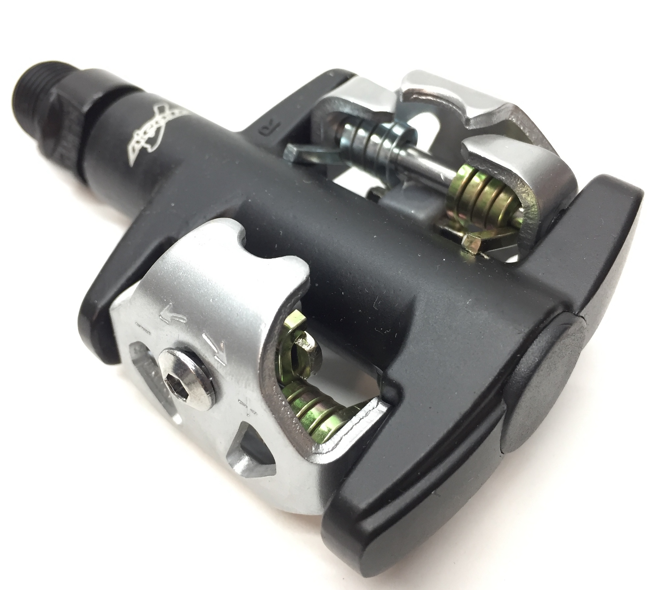 Контактные педали Acor APD-2503 Clip-In, стандарт SPD, алюминиевый корпус, стальной механизм с регулировкой жесткости, ось 9/16 Cr-Mo, картриджные подшипники, с шипами в комплекте, вес 350 грамм (пара).
