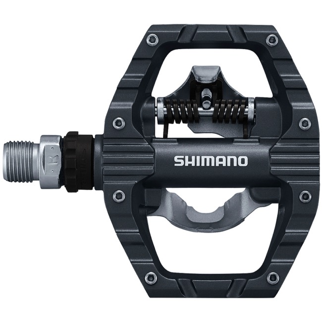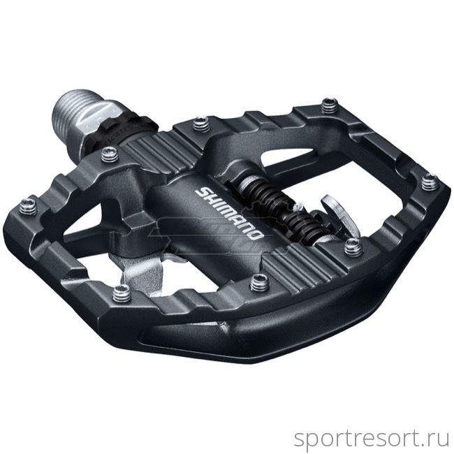 Гибридные педали Shimano PD-EH500. Универсальная конструкция SPD с одной стороны, и плоская платформа с другой. Улучшенное сцепление и увеличенный контроль. Регулировка встегивания и выстегивания. Ось из хромолибдена. Корпус из алюминия, в комплекте шипы SM-SH56.Спецификации: