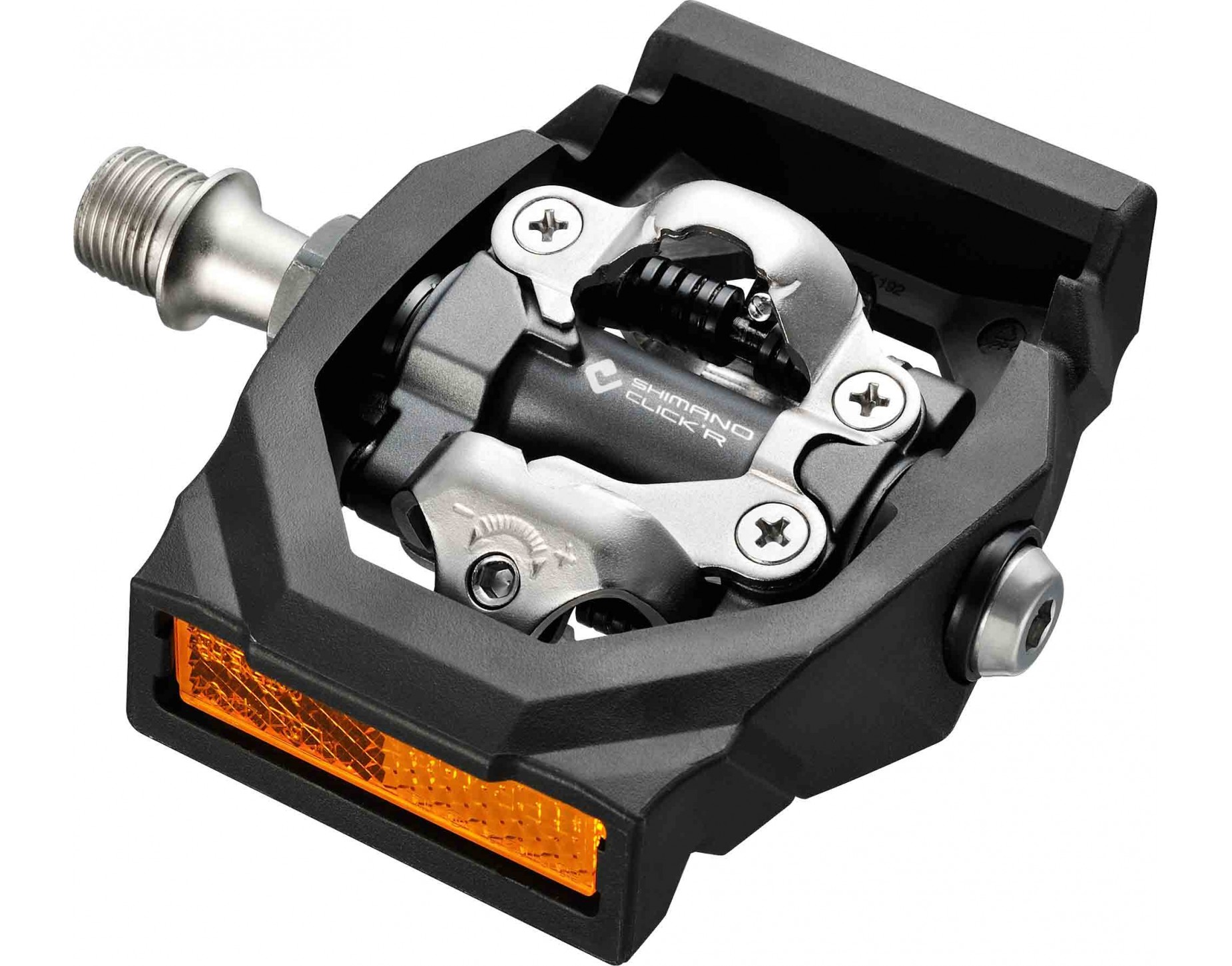 Click'R - это система педалей от Shimano, состоящая из серии обуви CT (Country Touring) и специальных контактных педалей с платформой с более мягким механизмом выстегивания. С технологией Click'R Shimano воплотила в жизнь идею сочетания безопасности и эффективности системы SPD с комфортом уличной обуви и педалей на классической платформе.