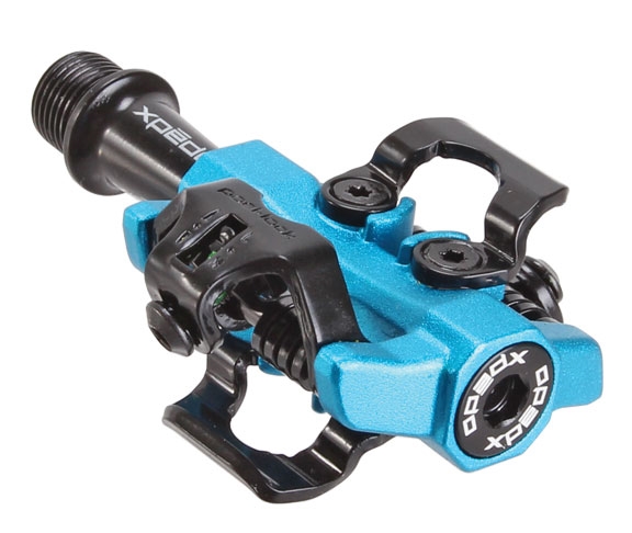 Контактные педали Xpedo XMF-10AC CXR, стандарт SPD, регулировка жесткости механизма Posi-Lock, корпус из алюминия AL6061, ось 9/16" Cr-Mo, 3 промышленных подшипника, вес 295 грамм (пара), в комплекте шипы SPD Xpedo XPT Cleats 6 градусов. Цвет синий.