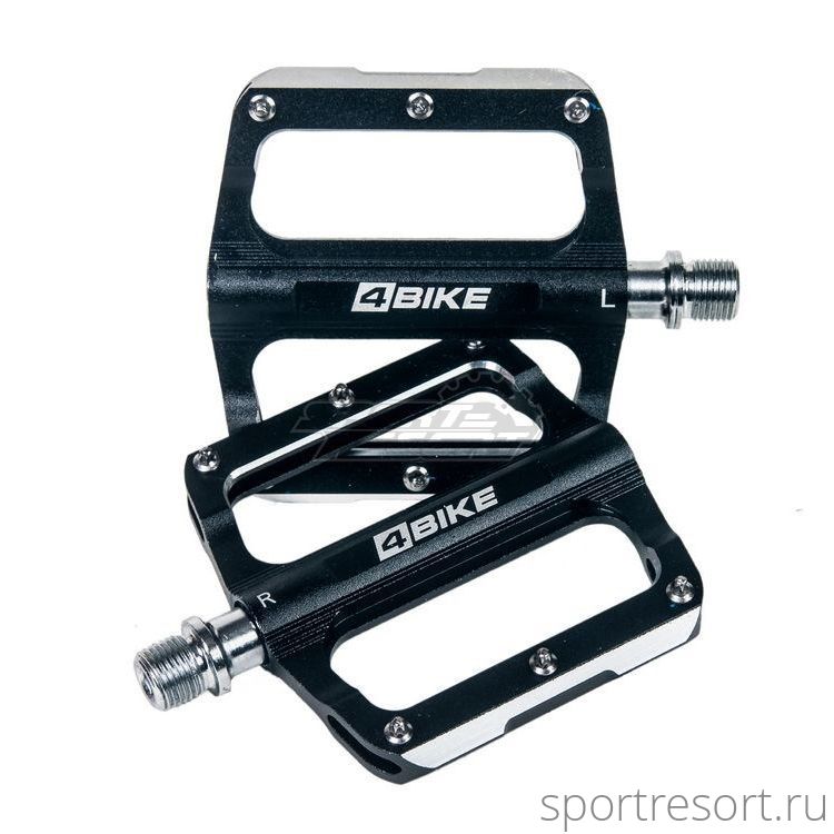 Педали 4BIKE K306, черные, размер 120х100х18 мм, 3 промподшипника, Cr-Mo ось, платформа из фрезерованного алюминия со сменными шипами.