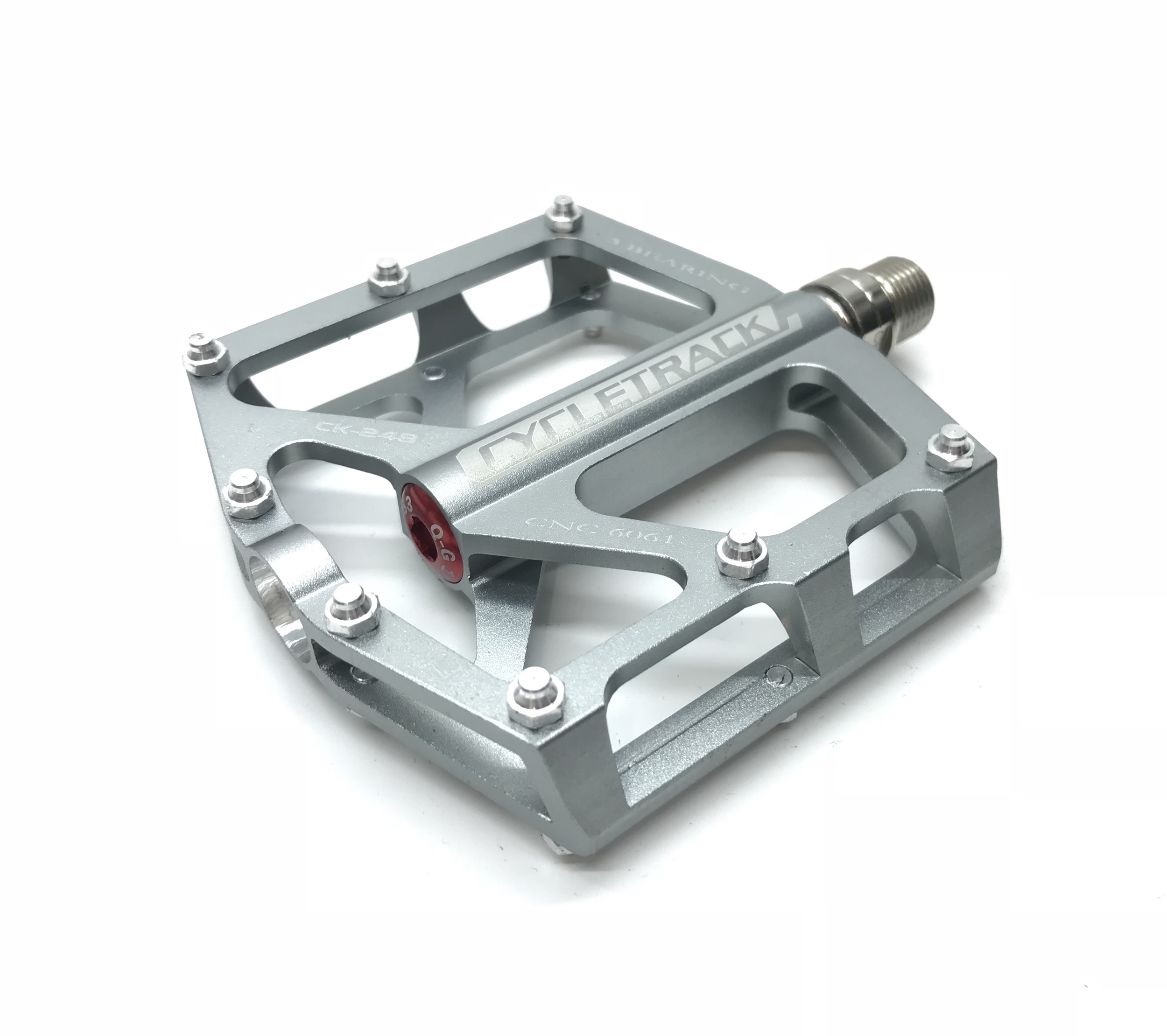 Педали CycleTrack CK-248, размер 96х92х17 мм, материал платформы CNC алюминий 6061, 3 промышленных подшипника, ось Cro-Mo 9/16, сменные шипы, вес 315 грамм (пара).