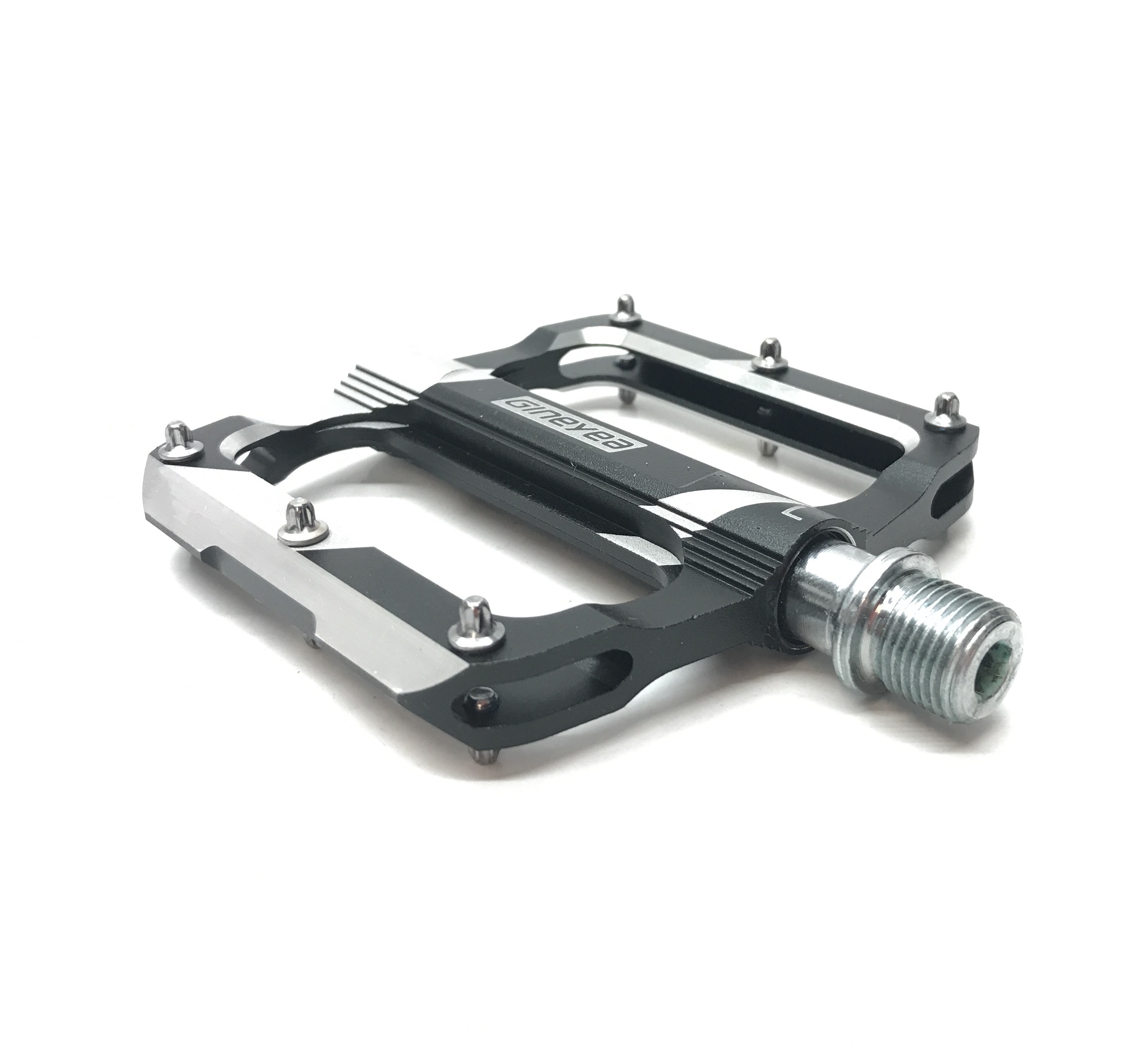 Педали Gineyea K306S, материал CNC алюминий, размер платформы 92х90х13 мм, 3 промышленных подшипника, ось Cr-mo, 12 сменных шипов на каждой педали, вес 320 грамм (пара).