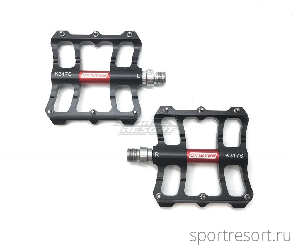 Педали Gineyea K317S, материал платформы CNC алюминий, размер 95х90х18 мм, 2 промышленных подшипника и втулка трения, Cr-Mo ось, 12 сменных шипов на каждой педали, вес 340 грамм (пара).