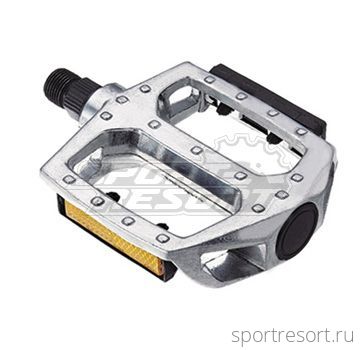 Педали алюминиевые, литые широкие, с отражателем, серебристые.