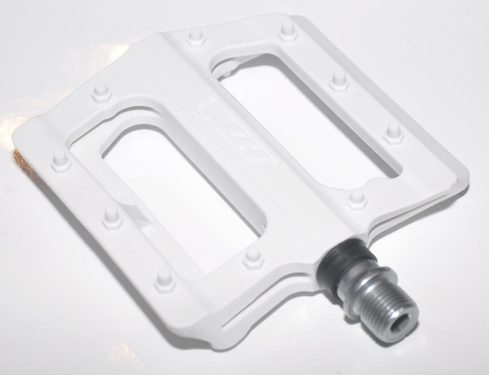 Педали HTI P12, назначение ВМХ, MTB, размер платформы 100x95x11 мм, материал платформы нейлон-кратон (прочный и легкий), промышленные подшипники + втулка скольжения, ось cr-mo Ф9/16", полностью закрытая система, литые шипы, вес 350 грамм (пара), цвет белый.В нашем магазине представлен огромный выбор велосипедных педалей, начиная от самых простых и бюджетных моделей в виде стандартных платформ, заканчивая контактными педалями для профессионального велоспорта. Есть модели конкретно для детских велосипедов. Выбрать, и купить педали необходимые вам, вы можете на нашем сайте, или непосредственно в розничном магазине.