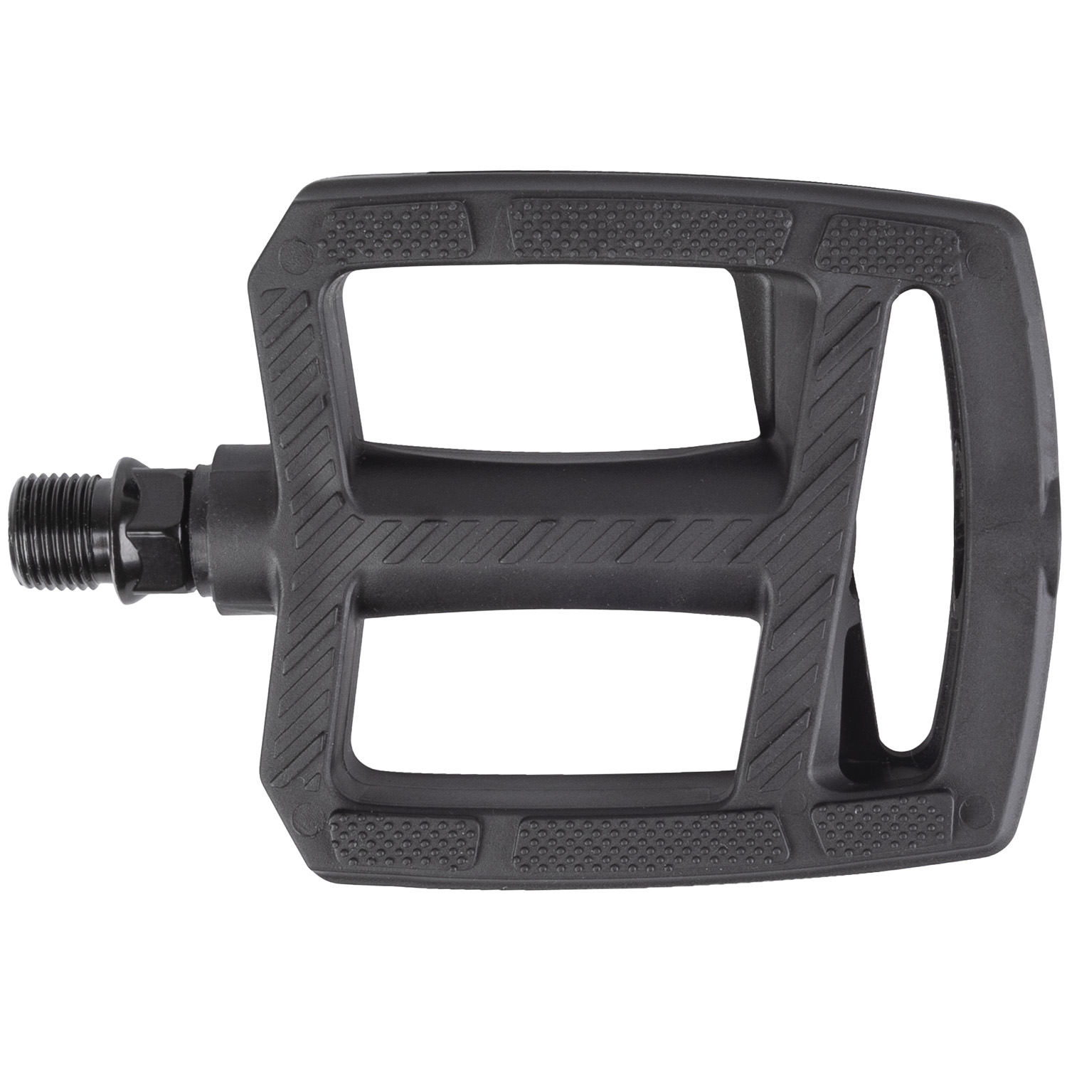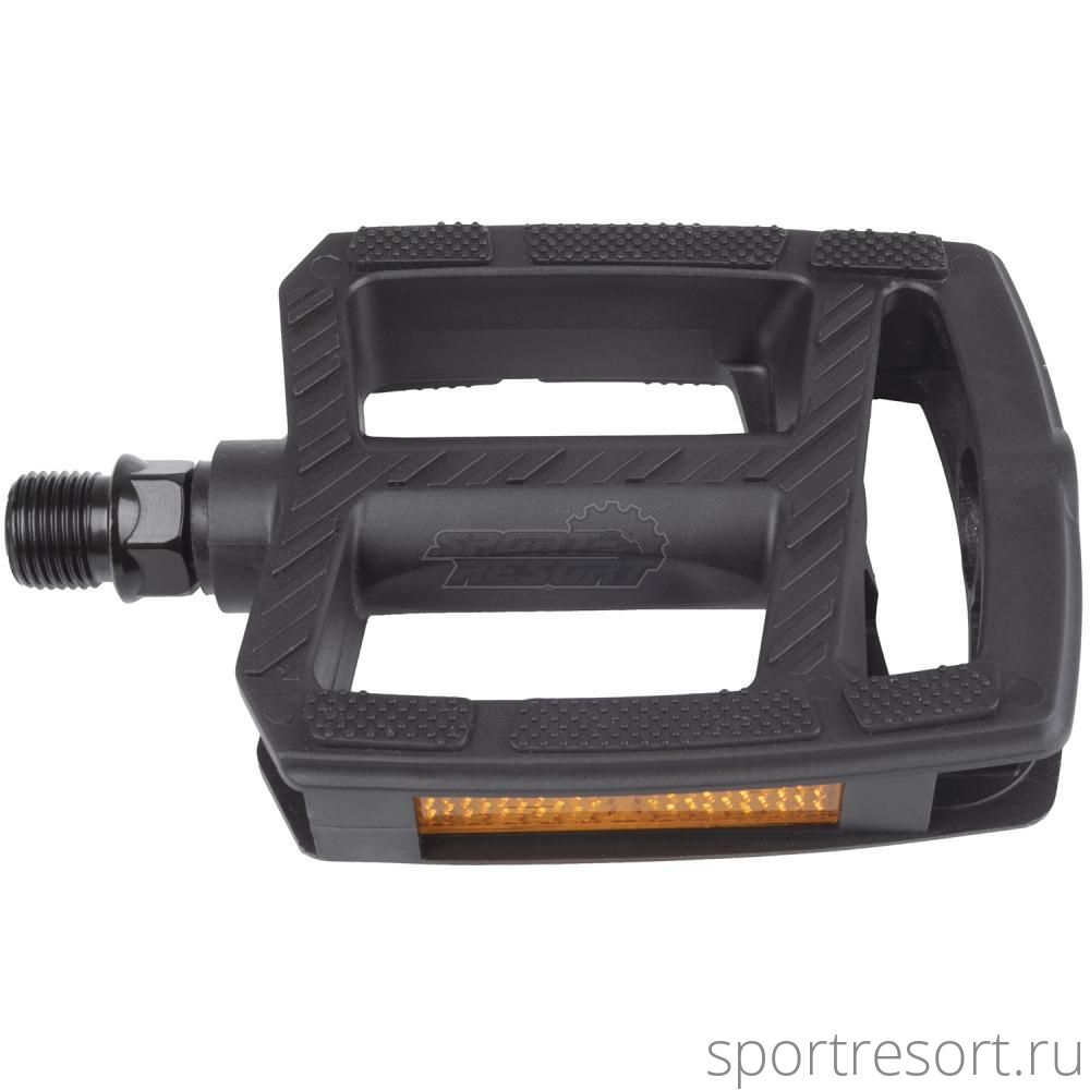 Педали пластиковые, с противоскользящим покрытием, с шарикоподшипниками, размеры 84*93мм, с отражателями, черные.