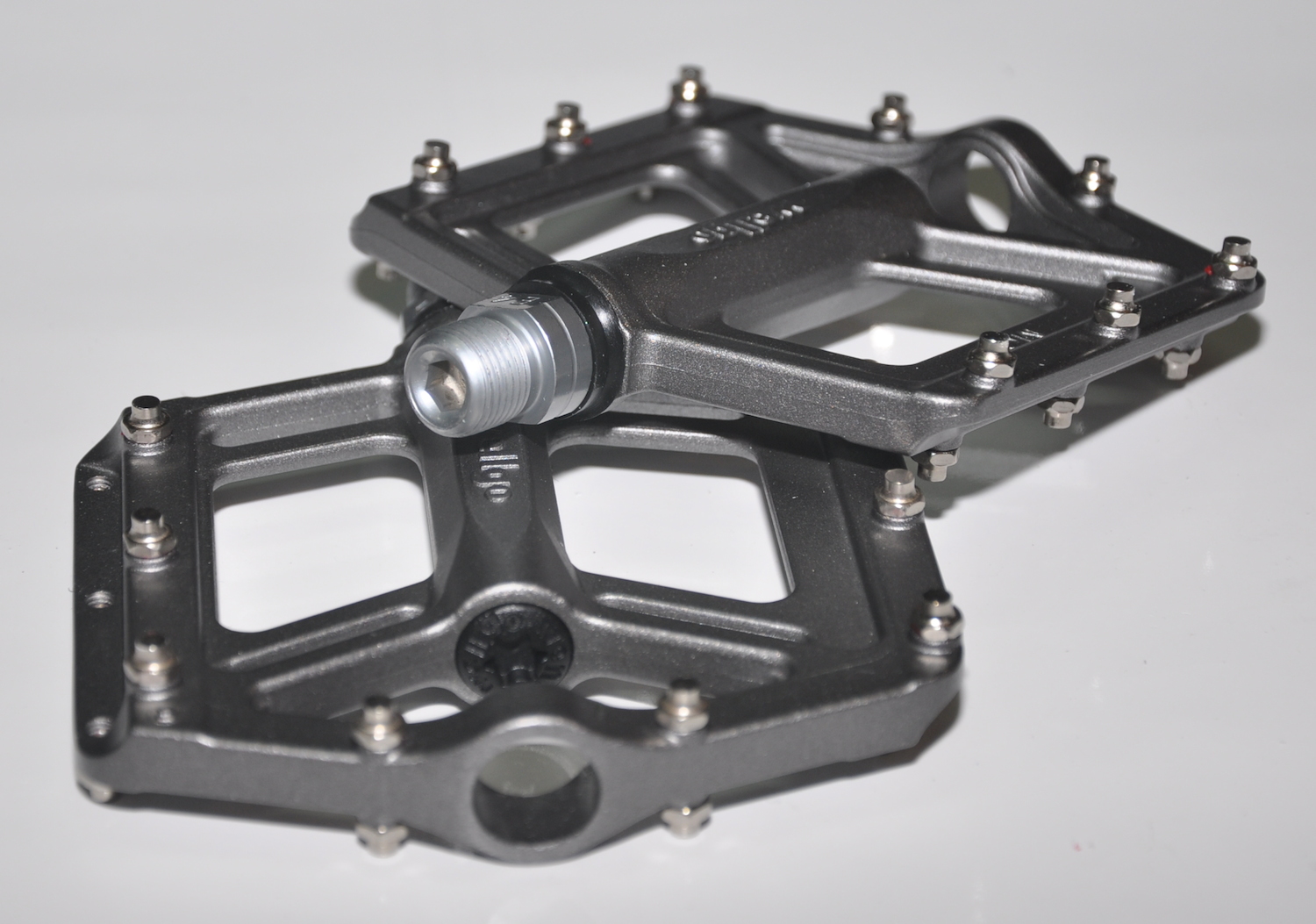 Педали Wellgo MG-6 AL, материал платформы алюминий, размер 100х100х9 мм, промышленные подшипники, закрытая система, 16 сменных шипов, ось cr-mo, вес 370 грамм (пара).