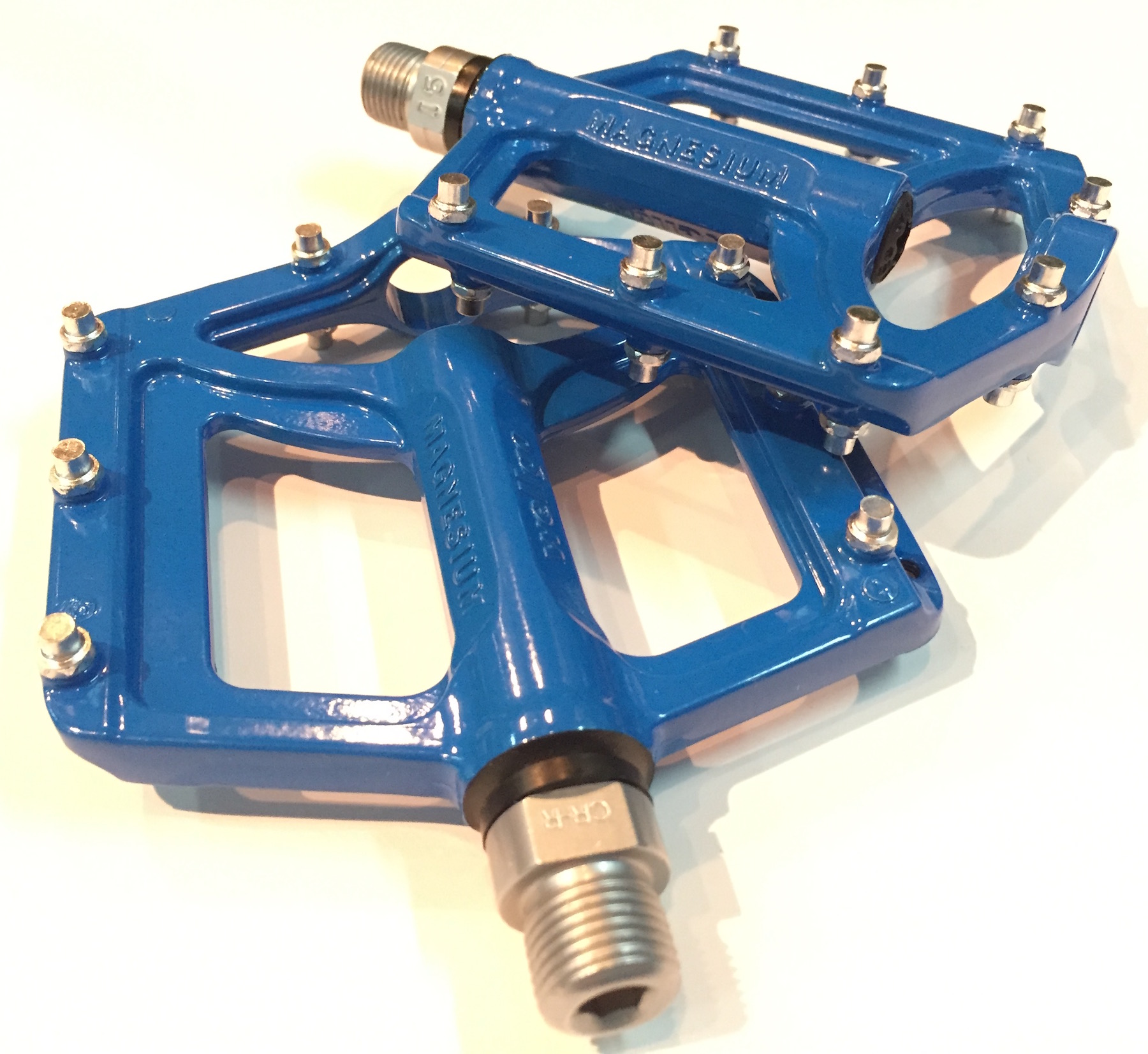 Педали Wellgo MG-7, платформа из магния, размер 100х100х9 мм, промышленные подшипники, закрытая система, 16 сменных шипов, ось cr-mo, вес 305 грамм (пара).