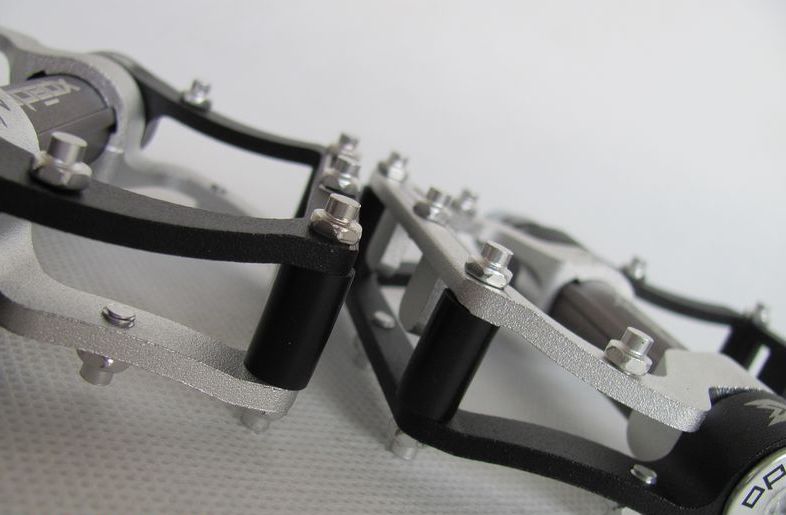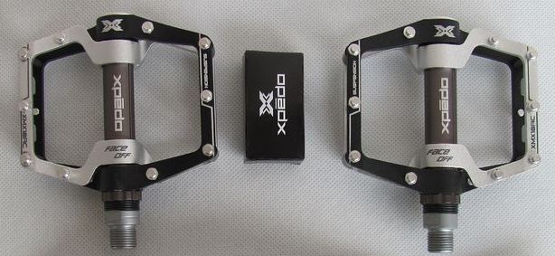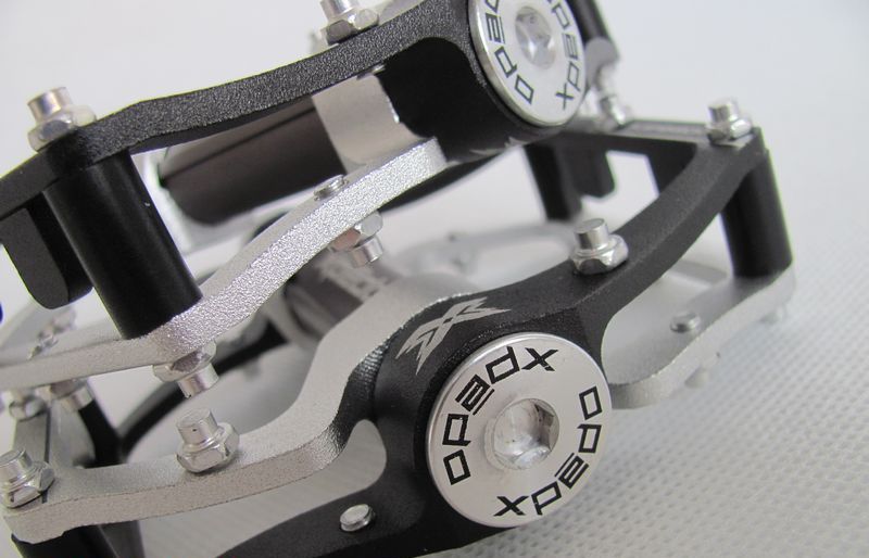Педали Xpedo XMX-18AC, конструкция "антишок" с эластомерами, корпус AL-6061, ось Cr-mo, 20 сменных шипов, промподшипники, черно-серебристые, вес 385 грамм (пара).