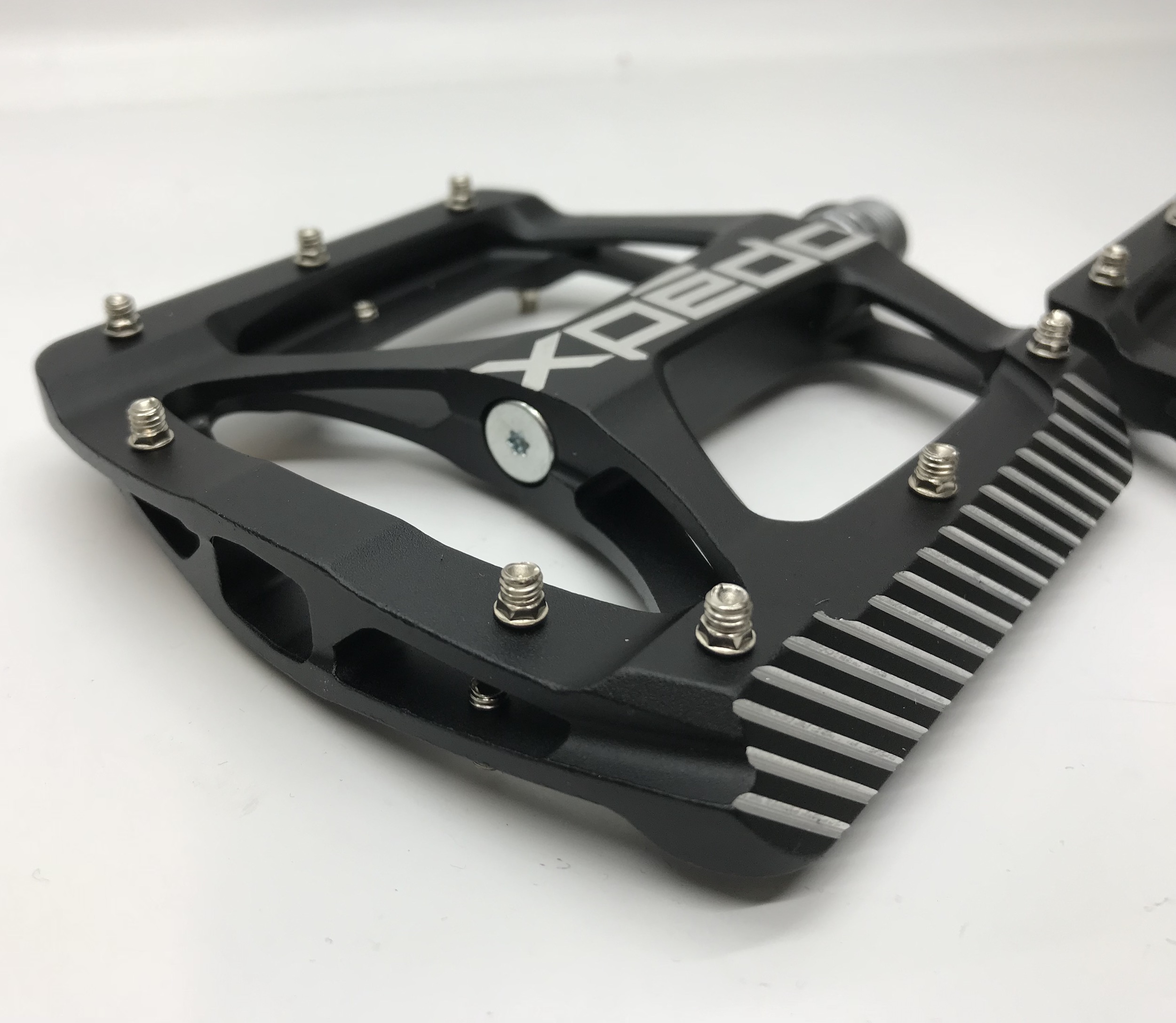 Педали Xpedo XMX-27AC ZED, размер платформы 110х110 мм, корпус из алюминия AL6061, низкопрофильные, 32 сменных шипа, ось Cr-Mo, промышленные подшипники с влагозащитой, вес 388 грамм (пара).