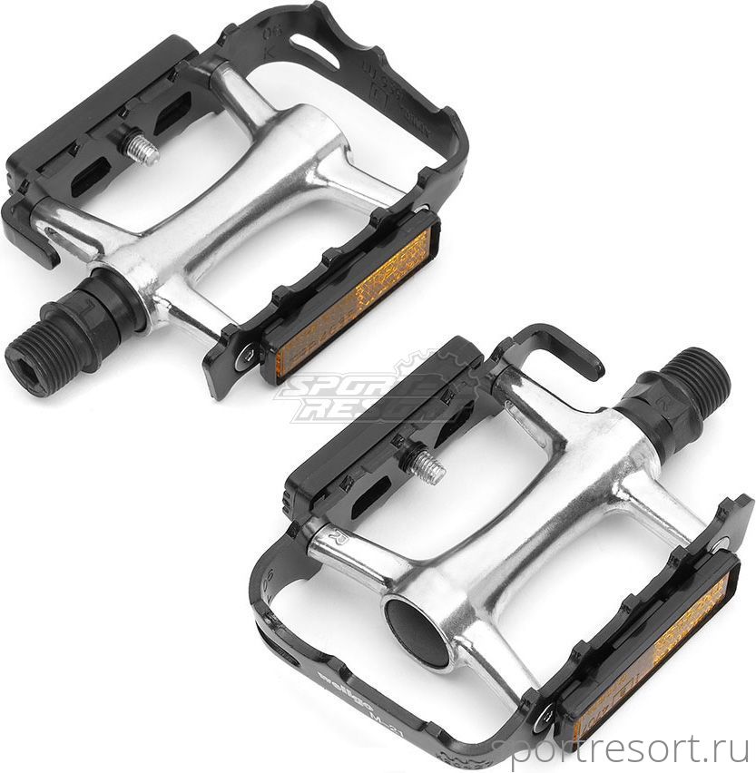 Педали HF HF-893, алюминиевая платформа, стальная рамка, размер 100х80х12 мм, ось Cr-mo 9/16, насыпные подшипники, с катафотами, вес 295 грамм (пара).
