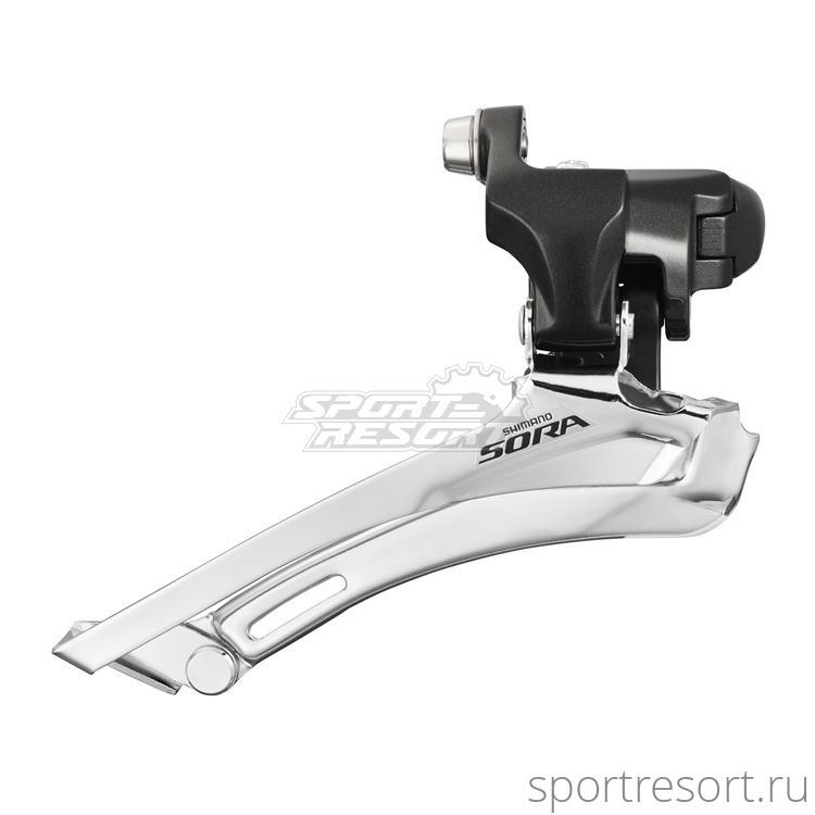 Переключатель передний Shimano Sora FD-3500, совместим с приводом 2x9 скоростей, универсальная тяга, монтажный хомут 31.8 мм с адаптером на 28.6 мм.