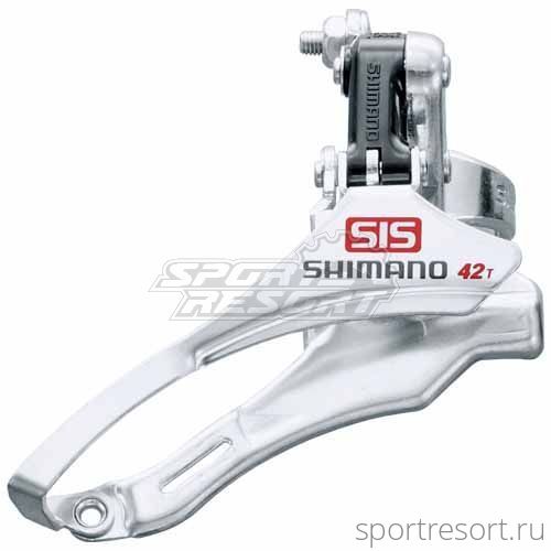 ПереклюПередний переключатель Shimano Tourney FD-TY10, для трансмиссии 3х6/7 скоростей, нижняя тяга, крепежный хомут 28.6 мм, для большой звезды 42T максимум.