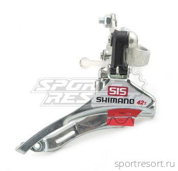 Передний переключатель Shimano Tourney FD-TY10, для трансмиссии 3х6/7 скоростей, нижняя тяга, крепежный хомут 31.8 мм, для большой звезды 42T максимум.