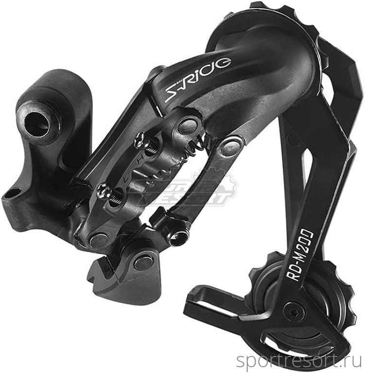 Задний переключатель S-Ride RD-M200, для привода на 7/6 скоростей, материал алюминий, коэффициент срабатывания 2:1 (совместим с Shimano), цвет черный , длинная лапка SGS, максимальная емкость 36T, минимальная емкость 11T, общая емкость 45T. Вес 245 грамм.Характеристики