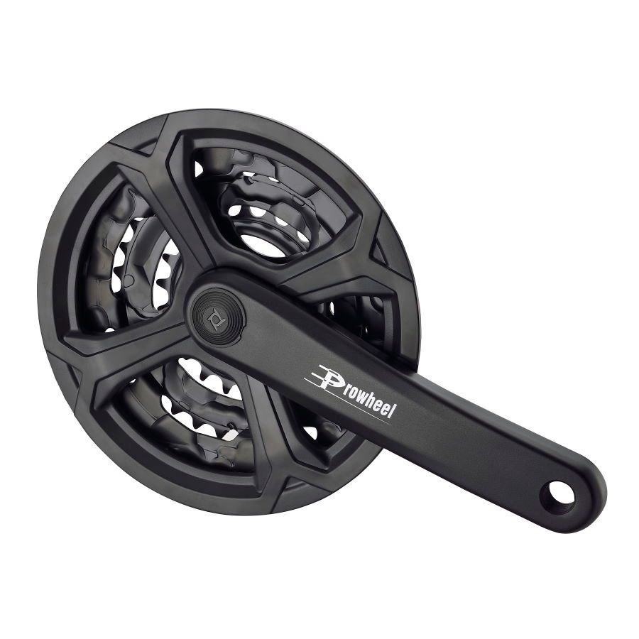 Система Prowheel TC-CQ2, серия MTB Enthusiast, под каретку квадрат (рекомендуемый размер 120 мм), для привода 3х7 или 3х8 скоростей, материал шатунов кованный алюминий 6061-T6, длина шатунов 175 мм,набор звезд 42/32/22Т, материал звезд сталь, чейнлайн 48.5 мм, Q-FACTOR / I-FACTOR 177 / 149 мм, с пластиковой защитой звезд, цвет черный.