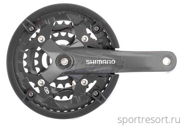 Система Shimano Acera FC-M391, 9 скоростей, под каретку Квадрат (без каретки в комплекте), длина шатуна 175мм, звезды 48/36/26T, с защитой, цвет черный.