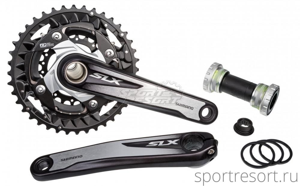 Система Shimano SLX FC-M672, для привода 3х10 скоростей, длина шатунов 175 мм, интегрированный вал, набор звезд 40/30/22T, с кареткой 63/73, вес 890 грамм.