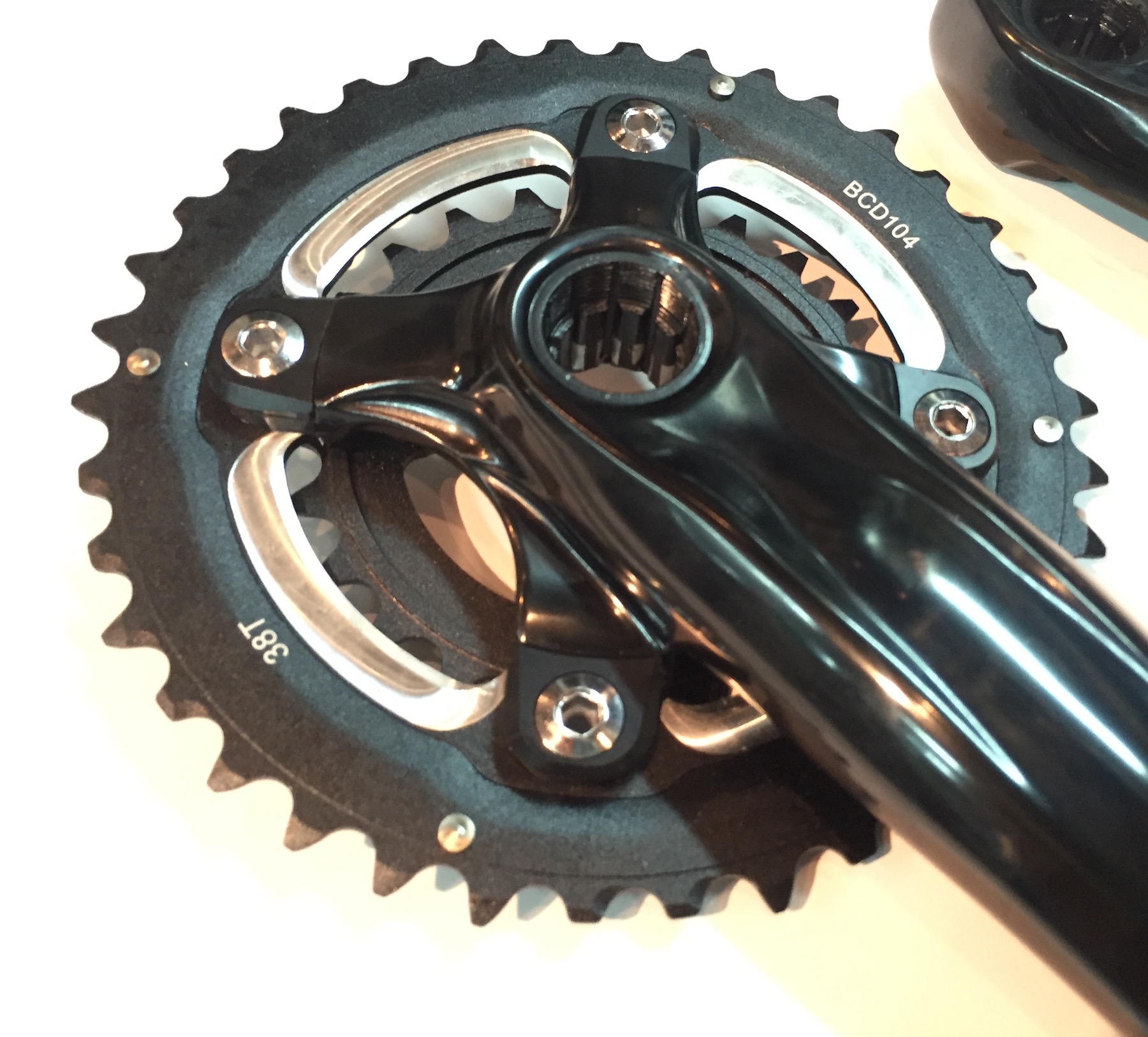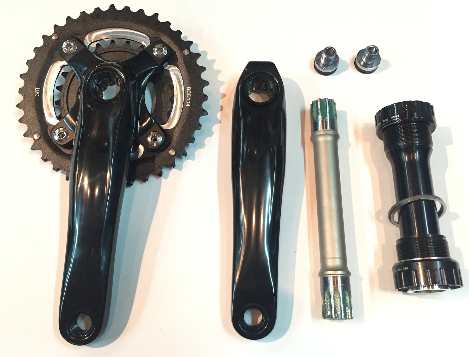 Шатуны Shun SS-8227-T3, для велосипедов типа Fat Bike, материал кованый алюминий 6061, звезды 38/24T, PCD 104/64 mm, длина шатунов 175 мм, каретка с внешними подшипниками 100 мм (в комплекте), вес 1220 грамм (с кареткой и болтами).