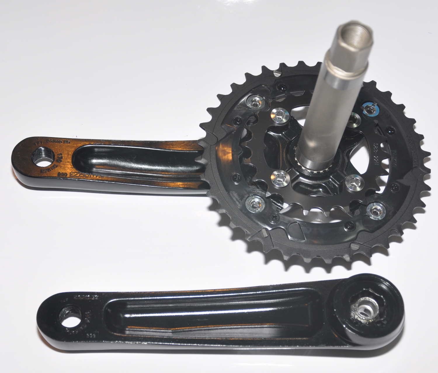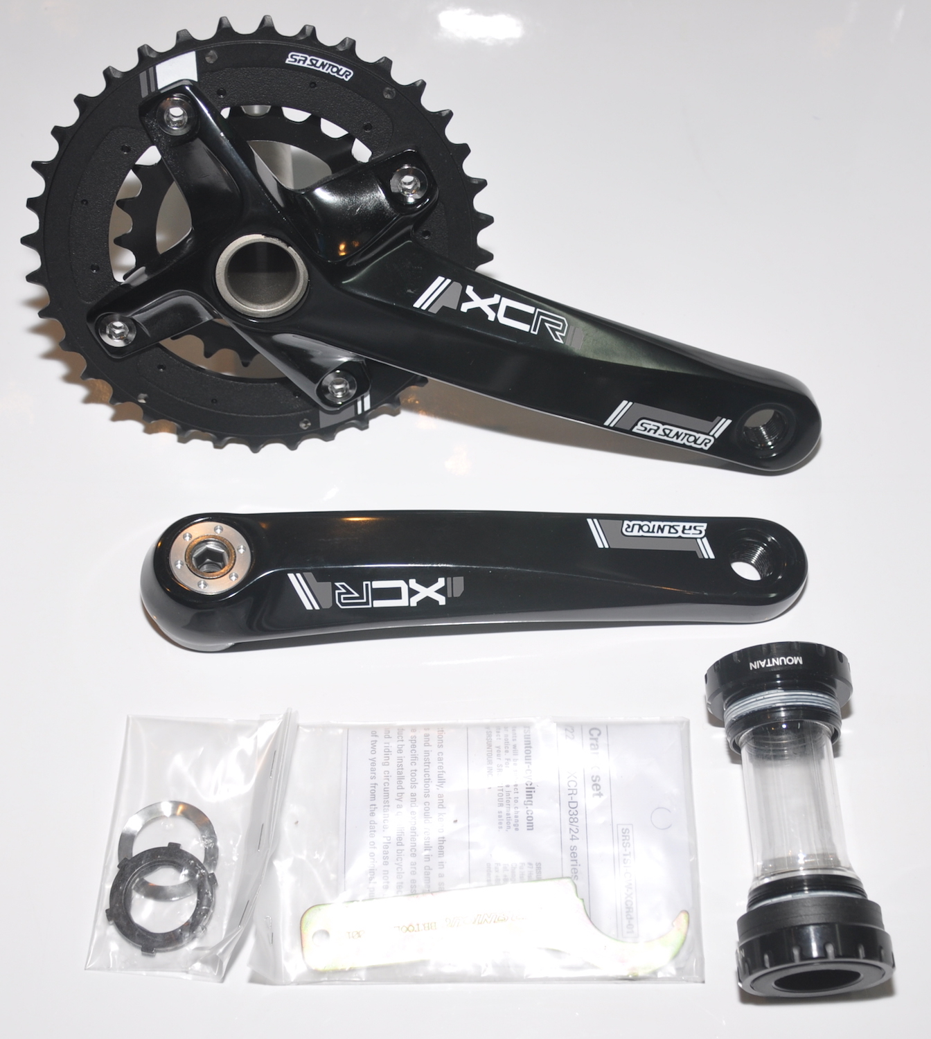 Шатуны Suntour CW15-XCR, материал 6065, звезды 38(алюминий)/24(сталь), PCD 110, длина шатунов 175 мм, полый вал 24 мм, с кареткой 68/73 Holowtech II, вес 950 грамм (с кареткой).