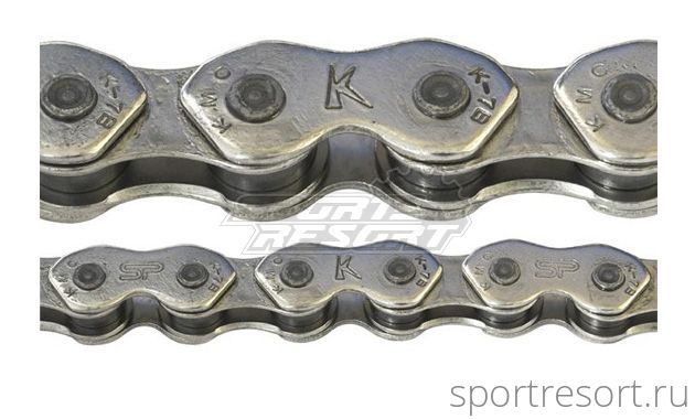 Цепь KMC К810, размер 1/2x3/32", длина 110 звеньев, для ВМХ Racing, серебристо-черная, вес 410 грамм.