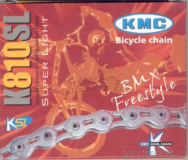 Цепь KMC K810 SL, размер 1/2х3/32, 110 звеньев, серебряная, облегченная, вес 308 грамм.