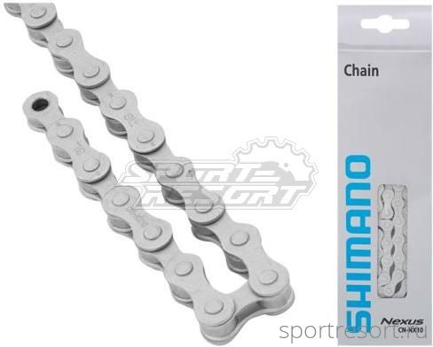 Велосипедная цепь Shimano CN-NX10 для трансмиссий под 1 скорость, шириной 1/8", отлично подойдет для велосипедов с планетарной передачей, городских велосипедов, детских велосипедов и велосипедов BMX