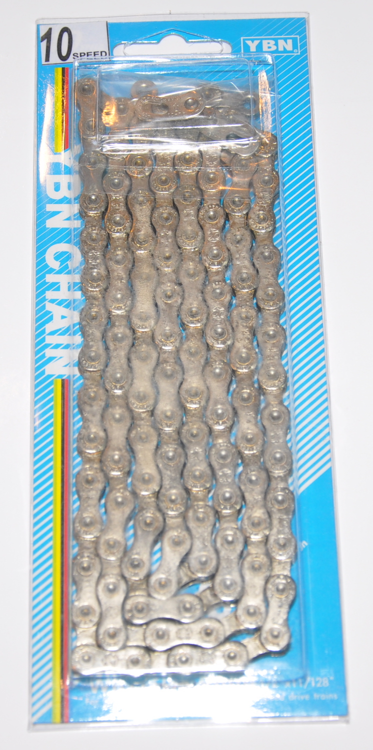 Цепь YBN S10CR, для привода 10 скоростей (Shimano Compagnolo, Sram), длина 1/2х11/128", длина 114 звеньев, серебристая, с замком.
