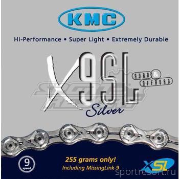 Цепь велосипедная KMC X-9 SL, размер 1/2"х11/128", длина 114 звеньев, для привода 9 скоростей, облегченная, серебристая, уровень XTR, вес 255 грамм, с замком Quick Link.