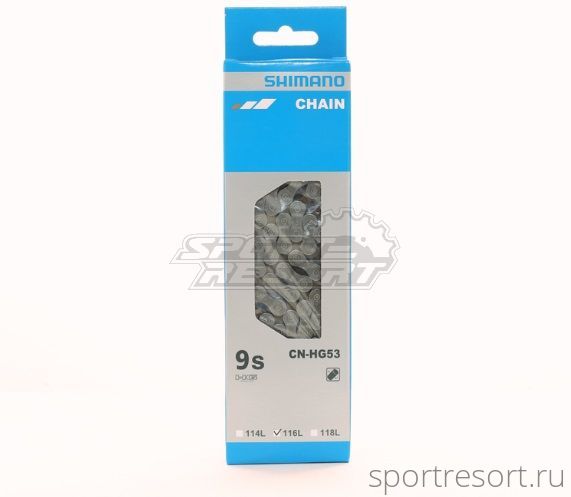 Цепь Shimano CN-HG53, уровень Deore, длина 116 звеньев, для привода 9 скоростей, соединительный пин в комплекте.